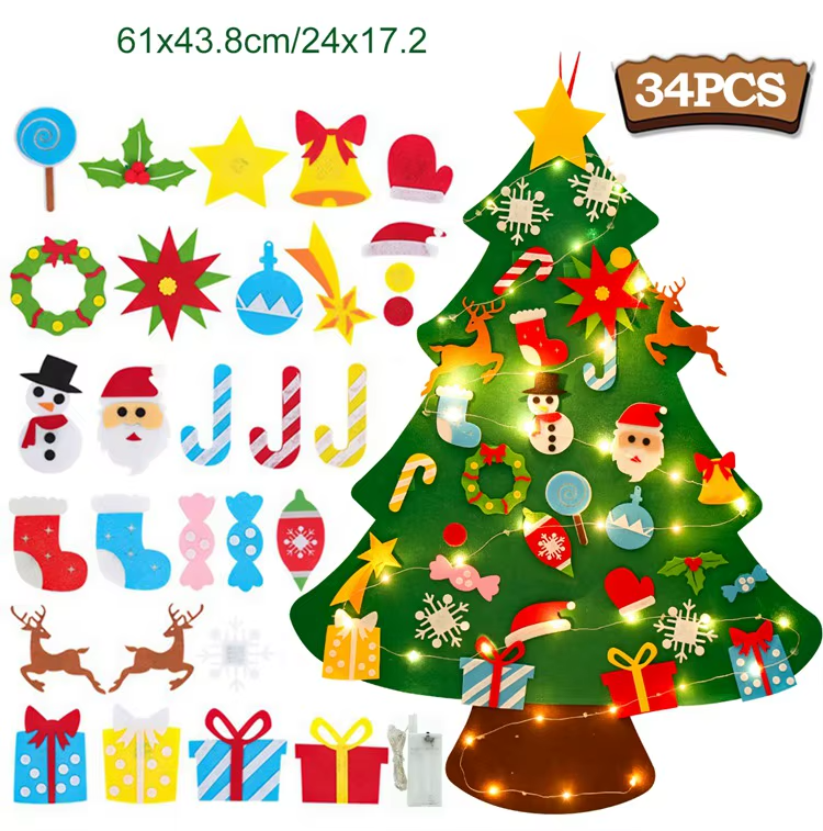 Árvore de Natal de Feltro Interativa para Crianças Decoração Educativa e Segura